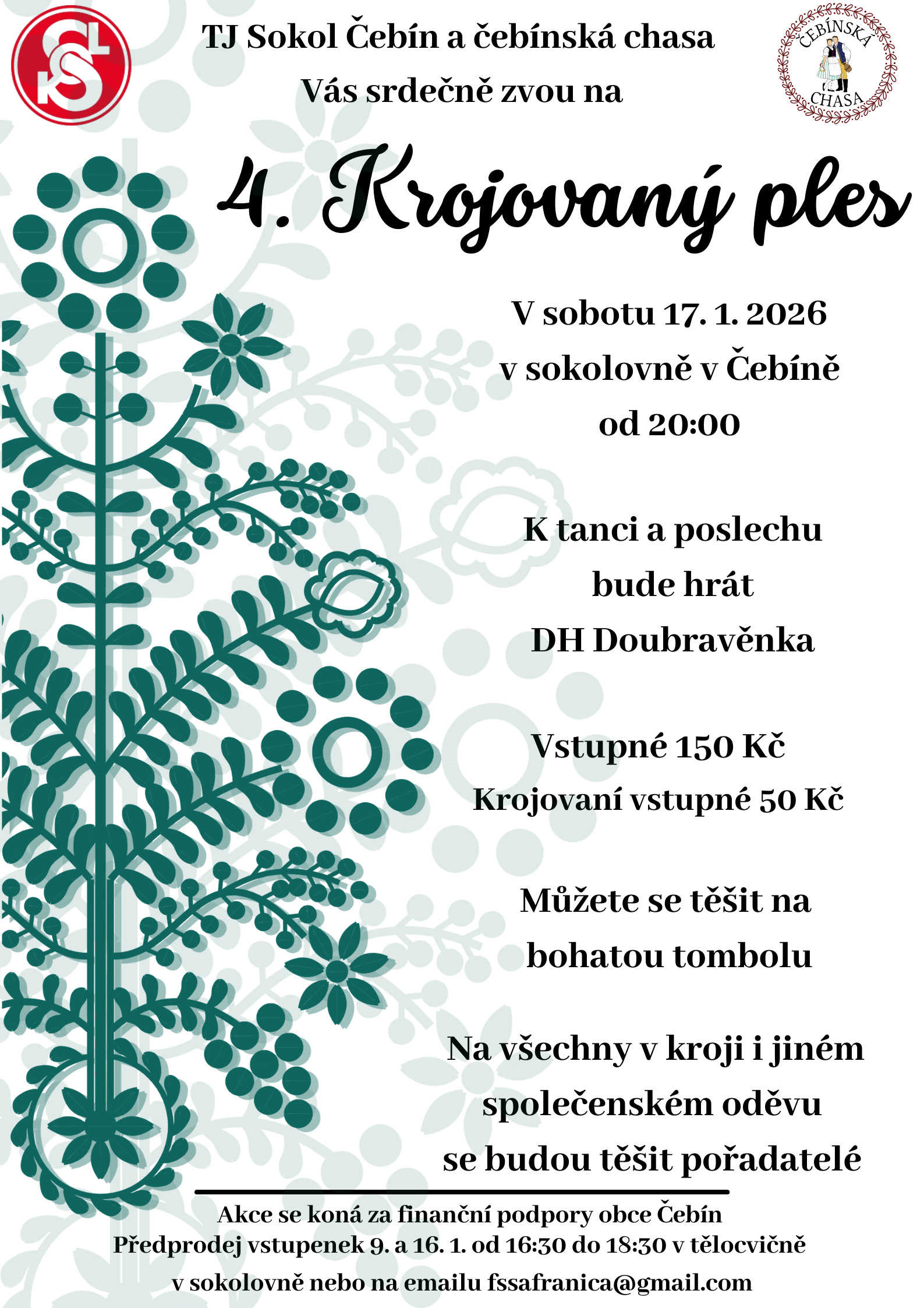 V sobotu 17. ledna se koná v Sokolovně krojovaný ples. K tanci a poslechu bude hrát dechová hudba Doubravěnka. Akce začíná ve 20 h. Všichni jsou srdečně zváni.